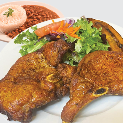 Fried Pork Ribs: Rice, Beans And Sweet Plantain