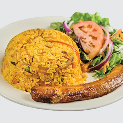 Arroz Amarillo, Maduro Y Vegetales Al Vapor